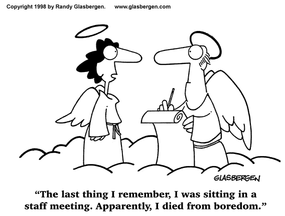 Alas, in most organizations, meetings are not effective; they waste time; bore the participants; and do not resolve anything. As the humorist Dave Barry notes: